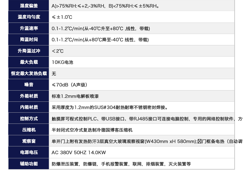 用途:溫度循環(huán)試驗(yàn)機(jī)用于模擬電池包/電池系統(tǒng)/電池模塊/單體電池試樣在不同的溫濕度環(huán)境下,適應(yīng)環(huán)境的能力
