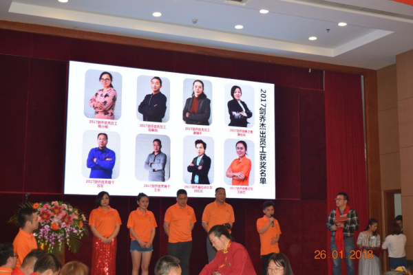 注:圖為劍喬2017員工頒獎現場