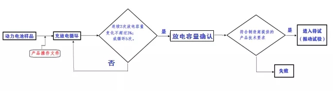 在振動試驗前,電池包或系統樣品需要先進行預處理循環,以確保在振動試驗時樣品的性能處于激活或穩定的狀態,在此提出,預處理失敗(如電池容量達不到要求)的樣品是不能做振動試驗的,作為不合格樣品返還電池制造商。