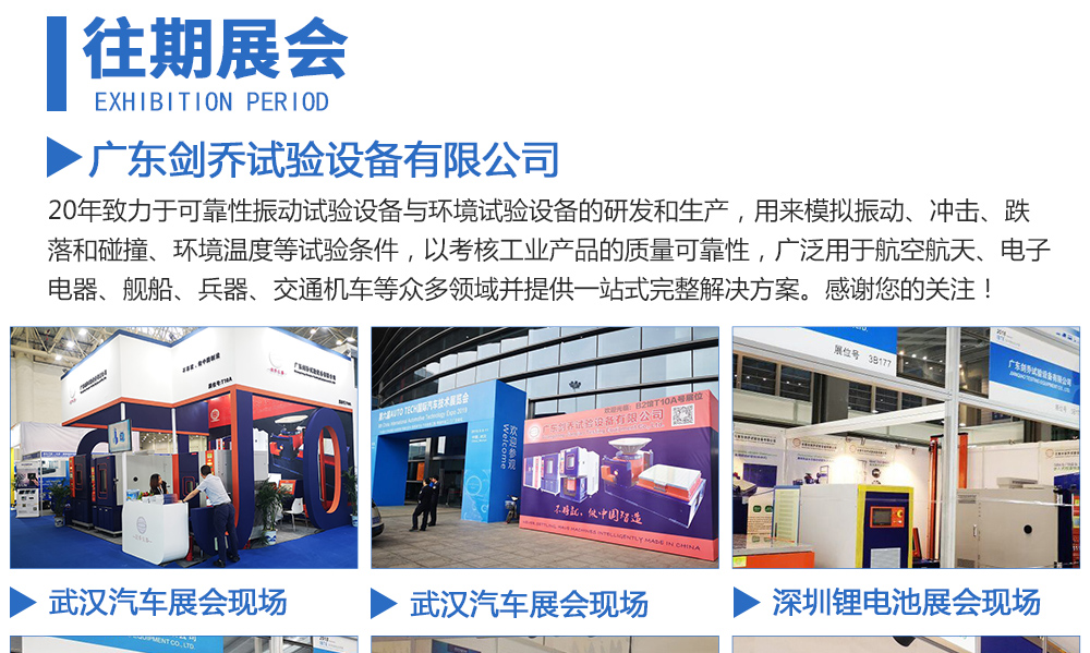 用途:廣東劍喬試驗(yàn)設(shè)備有限公司,20年致力于可靠性振動(dòng)試驗(yàn)設(shè)備與環(huán)境試驗(yàn)設(shè)備的研發(fā)和生產(chǎn),用來(lái)模擬振動(dòng)、沖擊、跌落和碰撞、環(huán)境溫度等試驗(yàn)條件,以考核工業(yè)產(chǎn)品的質(zhì)量可靠性,廣泛用于